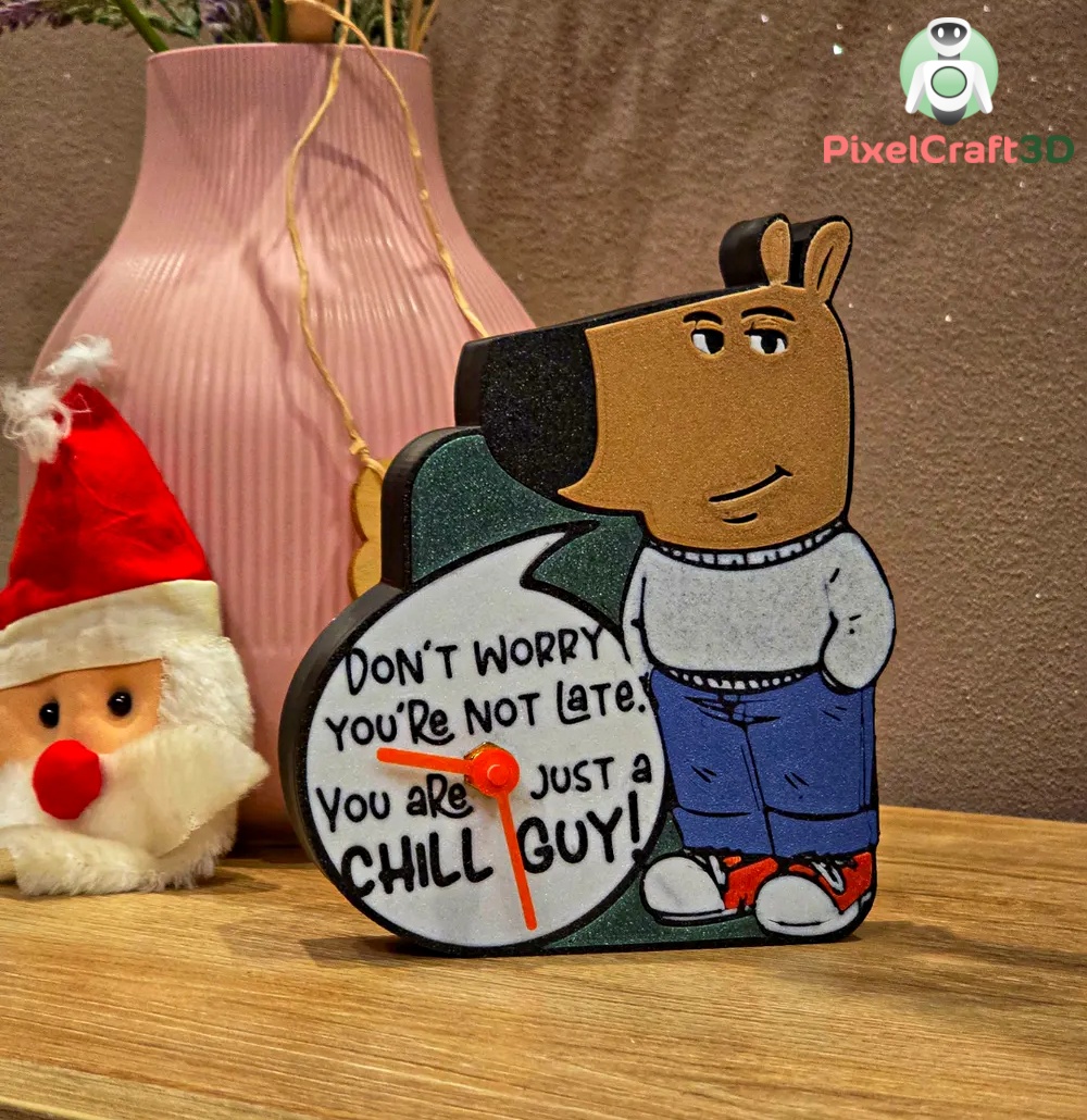 Our 3D-printed Chill Guy Clock brings a touch of relaxed, cool style to any space. Inspired by the laid-back vibe of the iconic “Chill Guy,” it merges creativity with practicality, creating a fun focal point while keeping you on time.