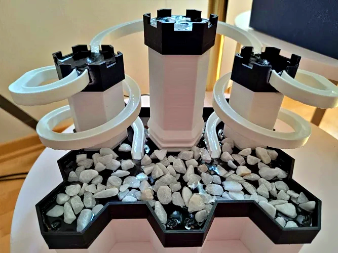 This Modular Desk Fountain is 3d printed to perfection. We use material that can resist water for years and maintain its color even in the outdoors. Setup your garden with it or simply place it on a corner table. You can also add it to your work desk for a peaceful background sound. The water flowing through the rocks generates such a peaceful vibe that you’d want one for every room in your home.You can customize this zen fountain with different accessories. You can add a lion or go for a planter. A waterwheel or a tiny working mill gives it a very realistic look. Customize number of hexes (size), height of hexes, and colors of your own choice. You can also choose colors for accessories.
